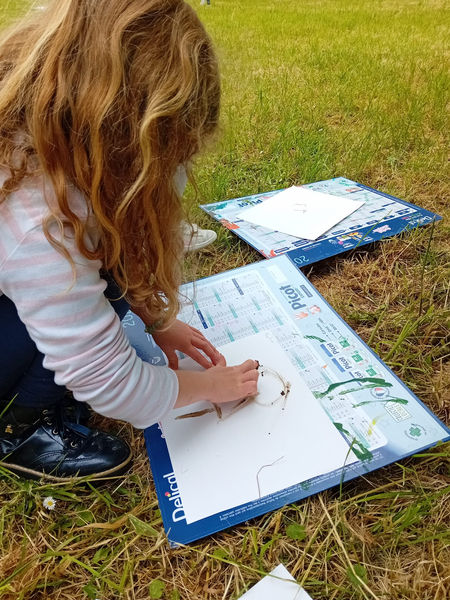 Jeudi 16 mai lors de la pause méridienne, les enfants qui le souhaitaient sont allés dans le terrain de l'école afin de créer des "œuvres d'art" en utilisant des couleurs naturelles avec les éléments qui les entourent.