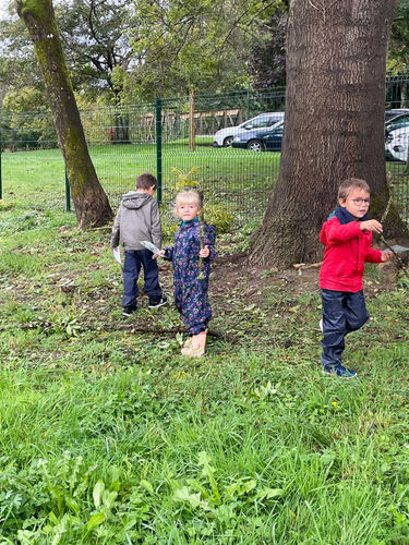 Vendredi 27 septembre, la classe de maternelle a fait "école dehors". Diverses activités ont été instaurées :