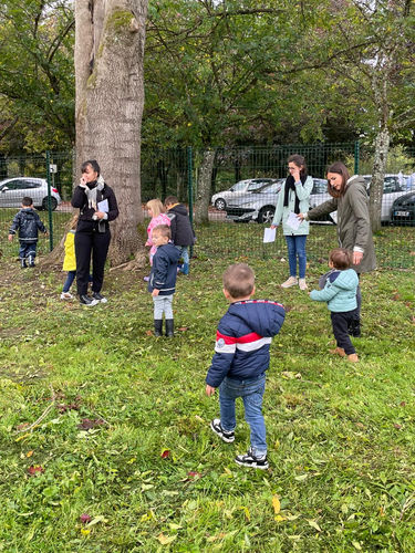 Jeudi 10 octobre, la classe de maternelle a reçu la visite des élèves de l'école d'Arceau. C'était l'occasion de leur faire découvrir notre beau projet d'école dehors !