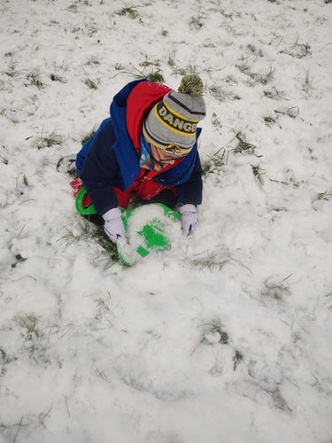 Cette matinée d'école dehors s'est évidemment terminée par la création d'un magnifique bonhomme de neige pour les CP/CE1 ! Quel bonheur de pouvoir savourer les joies de la neige fraîche ! Seule consigne : collaborer afin de n'en construire qu'un seul !