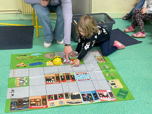 Les enfants de maternelle ont eux aussi découvert l’univers des robots avec des modèles adaptés à leur âge. Ils ont appris à programmer les déplacements à l’aide de petites flèches disposées directement sur le robot, favorisant ainsi la compréhension des déplacements dans l’espace, la coordination et la logique.