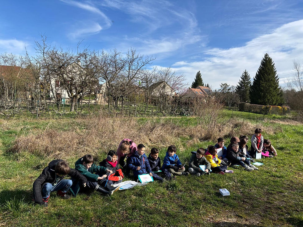 En fin de matinée, ce sont les élèves de CP, CE1 et CE2 qui sont à leur tour allés faire école dehors.