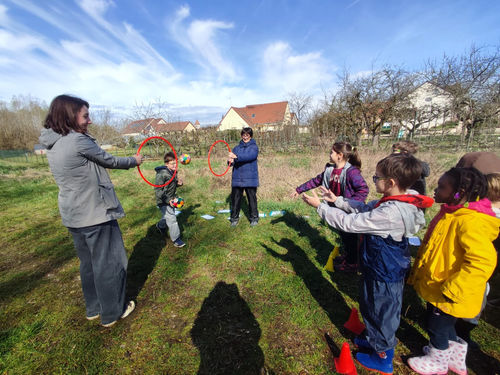 Ce moment d’apprentissage en plein air s’est également terminé par un atelier de lancer de précision : les élèves devaient lancer un ballon dans un cerceau, un exercice demandant concentration et adresse. Bon exercice de précision en vue du challenge qui approche !
