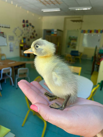 Mardi 30 avril les élèves de maternelle ont accueilli 2 œufs de cane et 10 œufs de poule. Ils ont soigneusement été placés dans une couveuse dans la classe afin que nous puissions les observer lors de leur croissance.