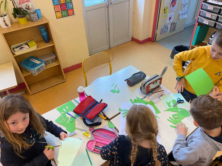 Pour conclure cette séance, les enfants ont façonné des rameaux en utilisant le contour de leurs mains (cf. photos).