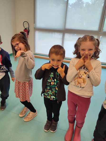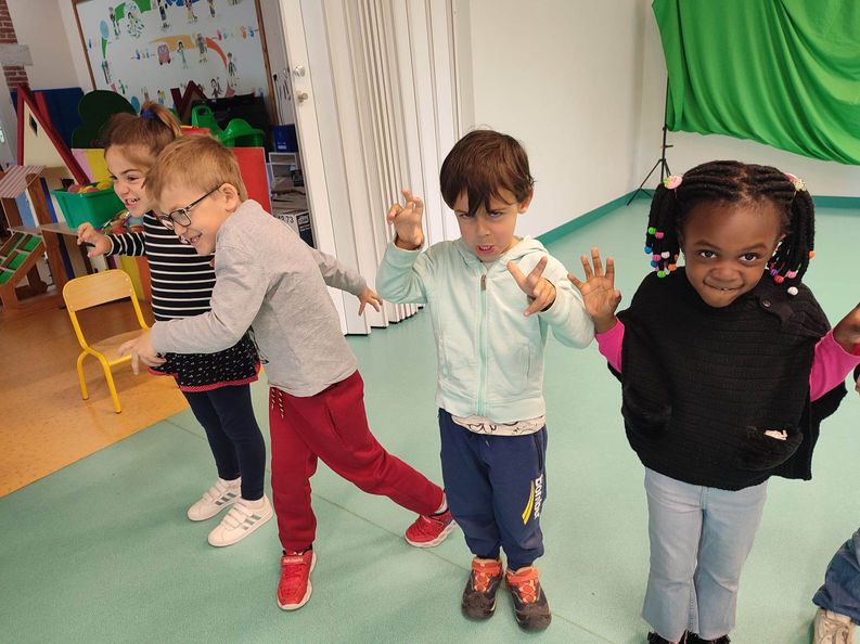 Maîtresse Marine a proposé une séance de théâtre aux élèves de maternelle :